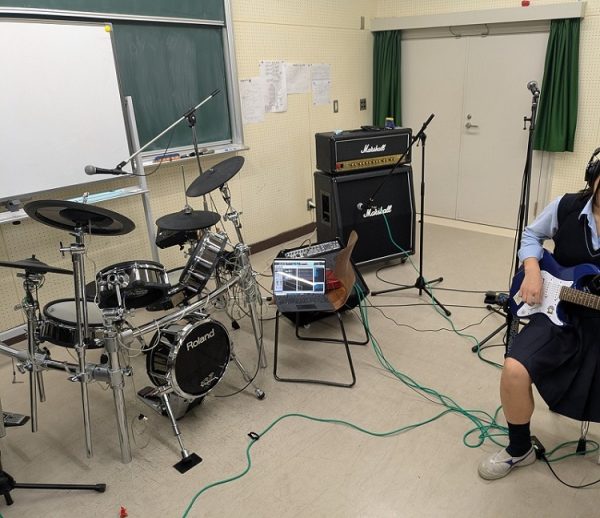 8月上旬、夏休みの期間を利用して、軽音楽部3年生のスリーピースバンド「無問題(モウマンタイ)」が、学校の音楽室でオリジナル楽曲のレコーディングを行いました。