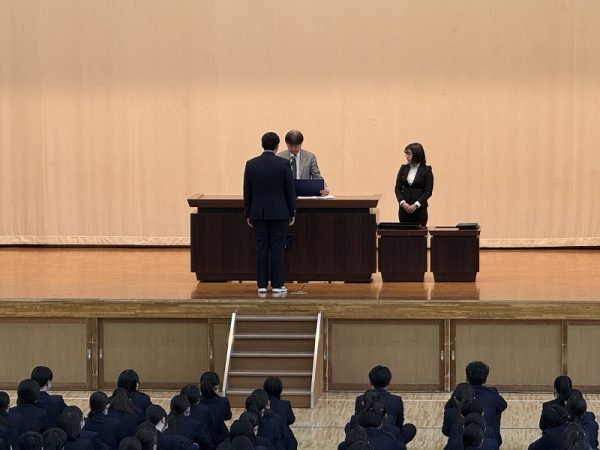 生徒指導部主任からは、部活動の活躍が学校の評価を支えていること、そして一人ひとりの行動が学校の看板を背負っているという自覚を持つことの大切さが伝えられました。