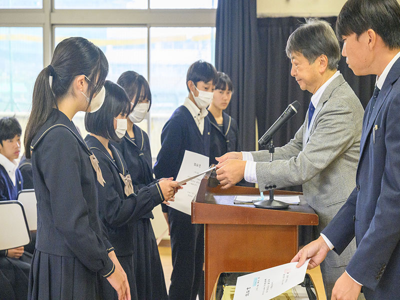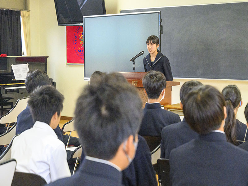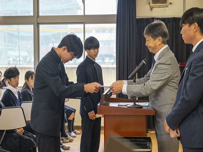 11月8日に全校朝礼が実施されました。今回は、学校説明会との兼ね合いから、高校とは一週間日付がずれての実施となりました。