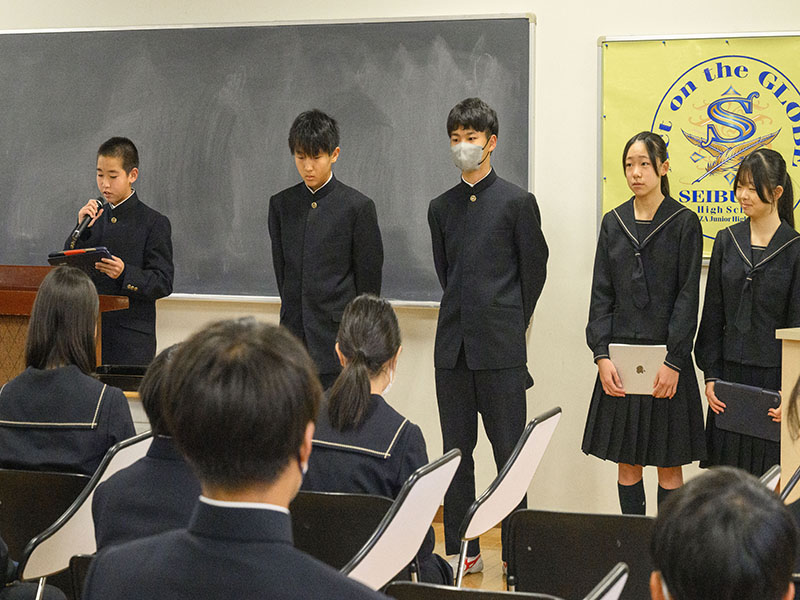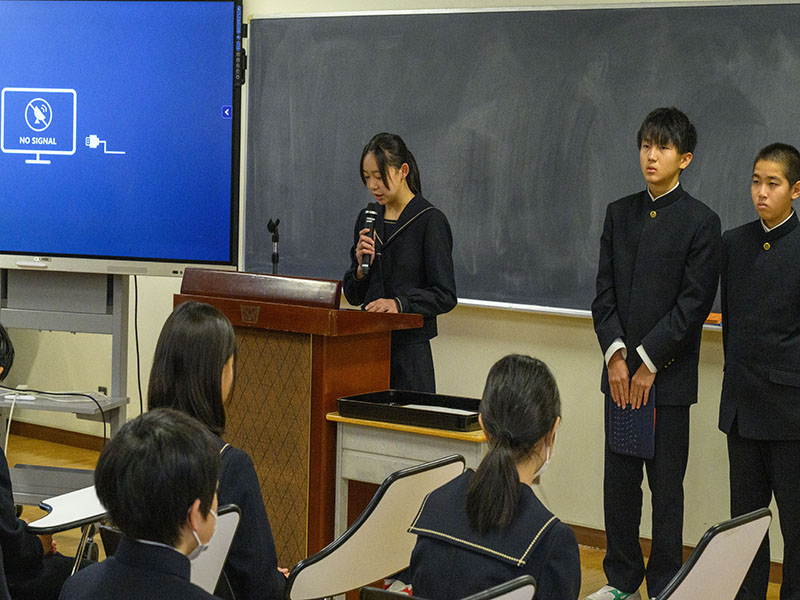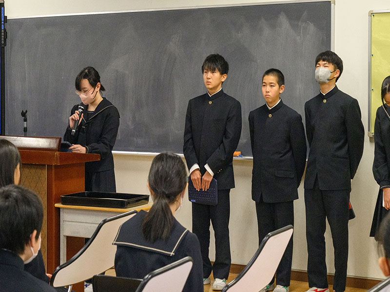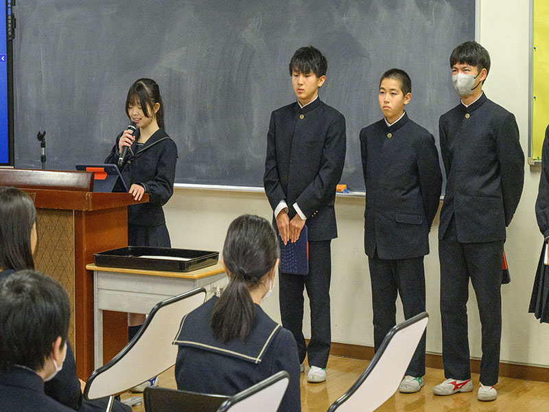 終業式前には中学生の学期感想発表が実施されました。1人1人が2学期に達成できたこと、挑戦してきたことを話してくれました。
