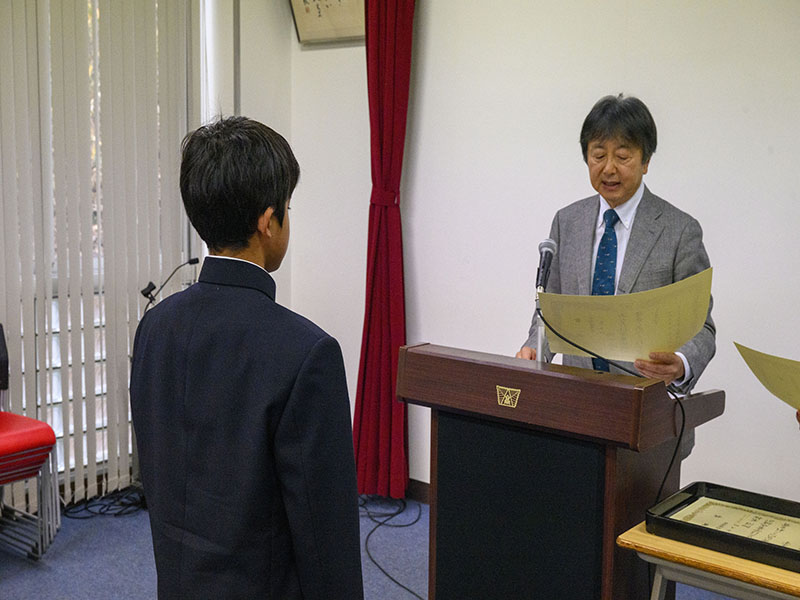 オンラインでの終業式では、校長先生より直接賞状を授与された子も多くいました。成績優秀者として、代表生徒が校長より表彰されます。これからもさらに高みを目指して頑張ってほしいですね!