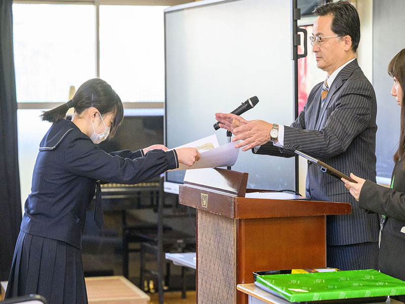 表彰としては、トンボ1129デザインコンクールで優秀賞を受賞した生徒への表彰が実施されました。非常に優れた作品を作ったようです。