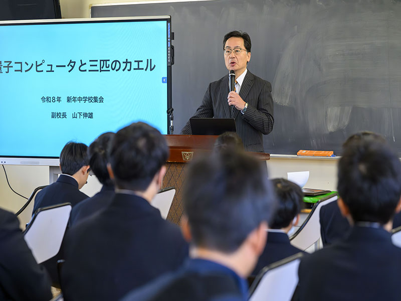 1月8日に、本校では第3学期始業式が実施されました。今年は中学高校共通で実施されるため、体育館で実施されました。昨年末に体育館は更新工事が実施され、床面が綺麗に仕上がり、新しい気持ちで迎える新学期にうってつけの雰囲気となりました。