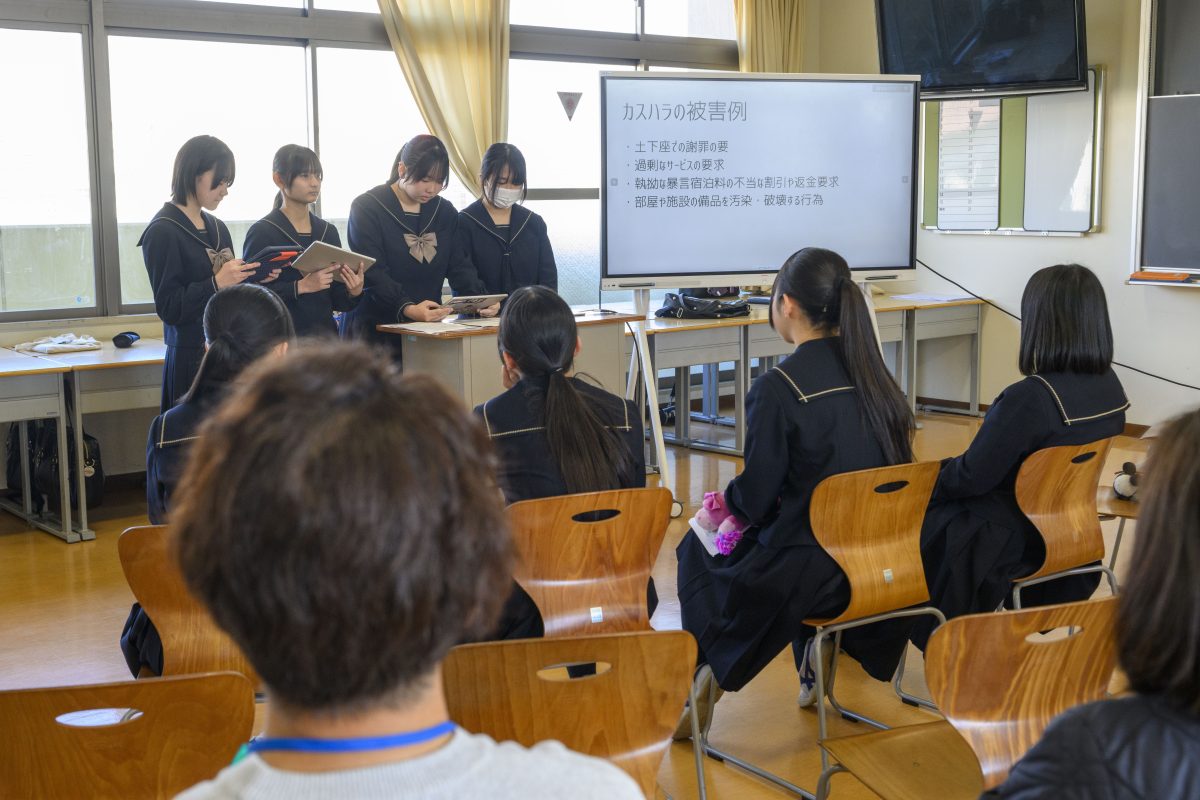 3年生は労働問題についてどう改善していくべきか?というテーマを元にプレゼンテーションを実施していました。今の社会が抱えている問題についてグループ内で調査を実施し、それを成果として発表をしていました。素晴らしい調査姿勢がとても評価sれていました。