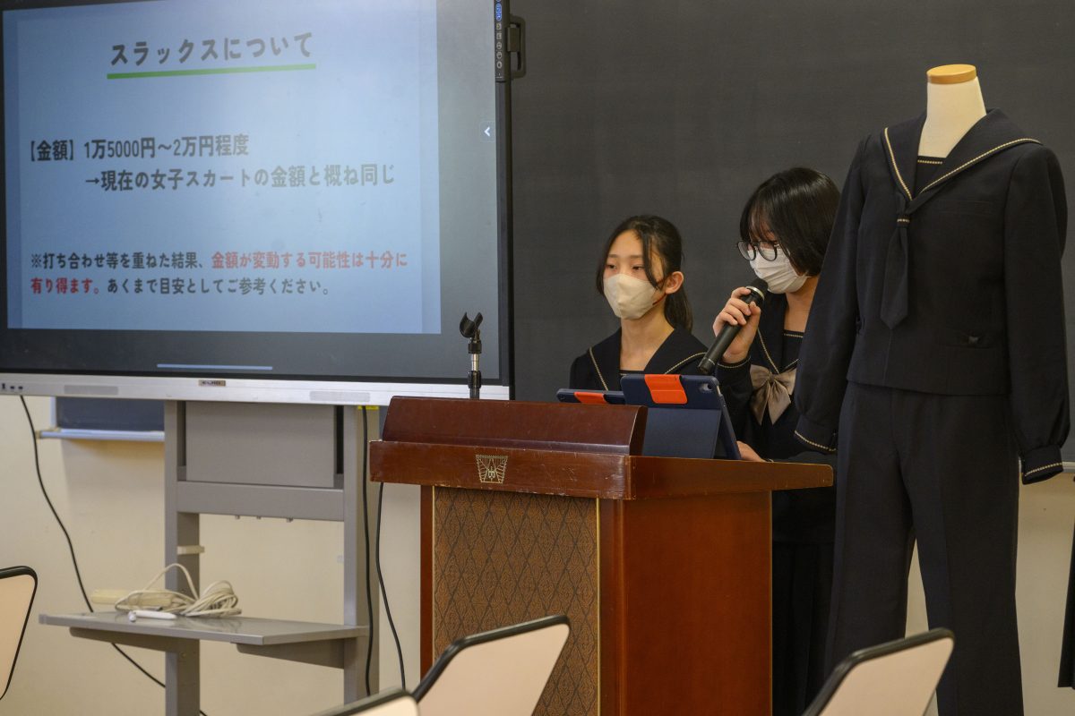 1年生は学校の魅力を引き出すためのイベント・コンテンツを企画し、自分たちの取り組みを発表していました。中には制服のデザインをすでに完成させ、試作品を外部業者と連携して作成した上でプレゼンテーションを実施している班もありました。(第3回学校説明会で発表した班です!!)