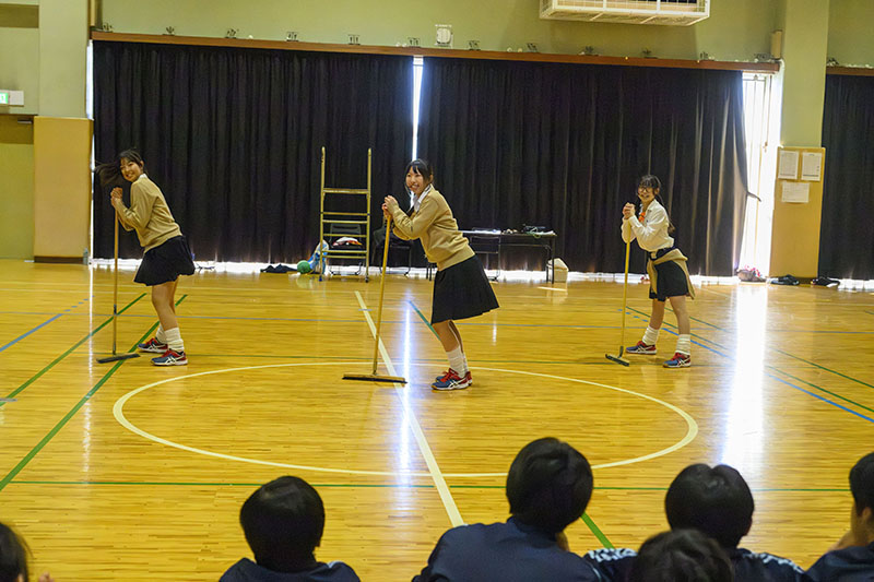 最後にはパフォーマンスが実施され、学年代表の生徒が応援ダンスを披露。3学年はなんと担任の先生も一緒にダンスを踊っており、大いに会場が盛り上がりました。
