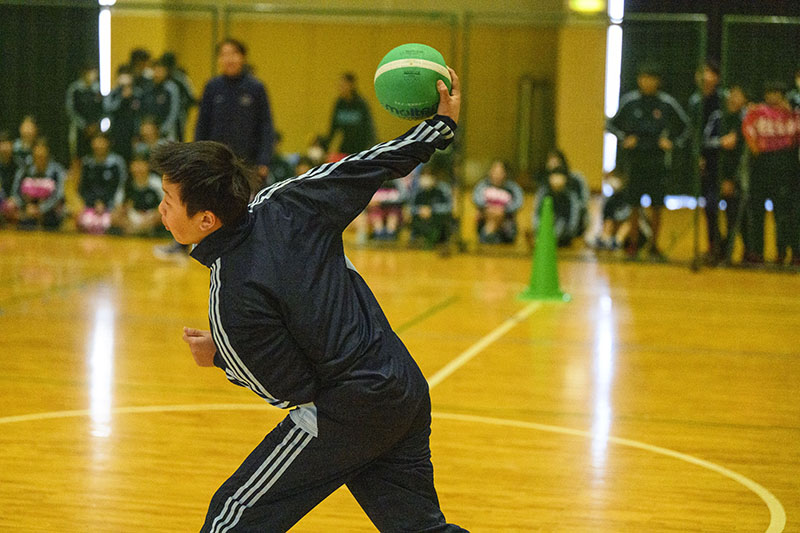 ドッチボールは学年男女別対抗で実施されました。格上の学年に勝っている下級学年もあり、白熱した戦いが繰り広げられました。