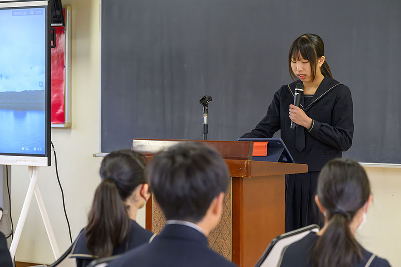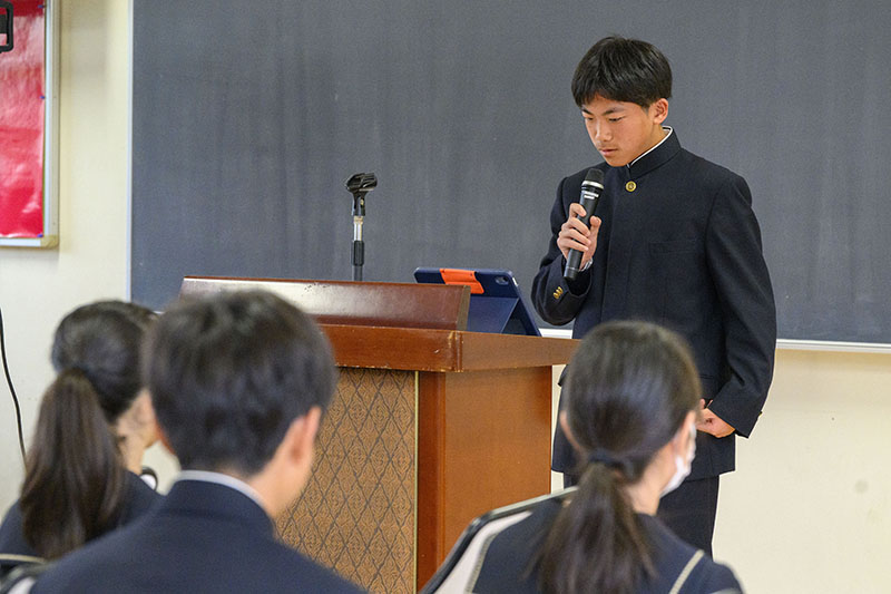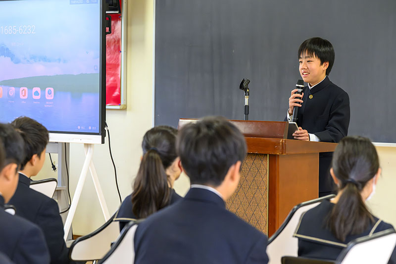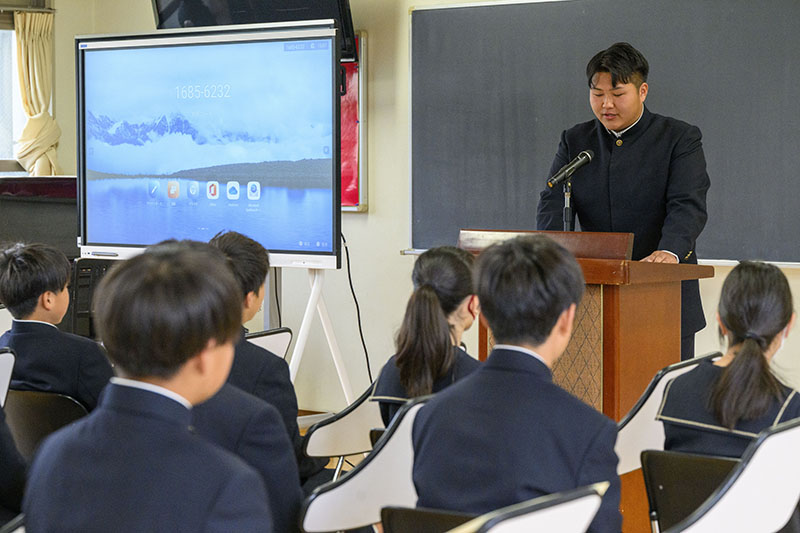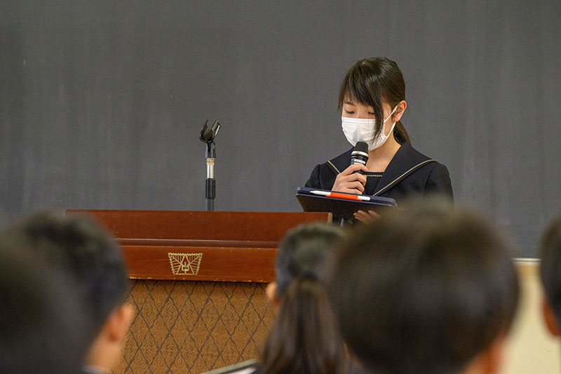 また、3学期・1年間の感想発表を代表生徒が実施しました。